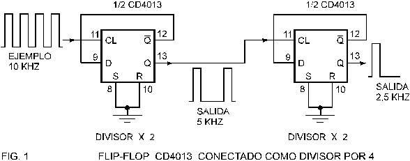 una operación de este tipo puede utilizarse un flip-flop CD4013, que ya hemos estudiado, y la forma de
